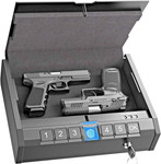 - Uimoso Secure Gun Safe With Biometric Lock Keypad And Illumination For 2 Pistols