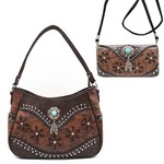 - Western Handbag Concealed Carry Purse Feather Women Shoulder Bag Wallet Coffee