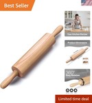 - Wooden Rolling Pin With Rotating Large Handle Professional Baking Tool 17 6