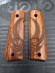 - 1911 Rosewood Outback Checkered Grips And Black Ruger Medallions